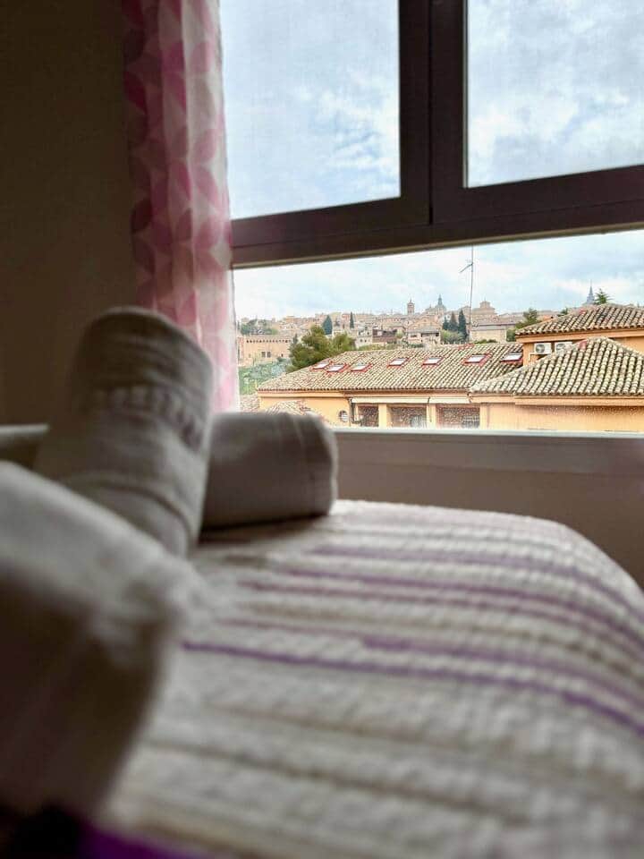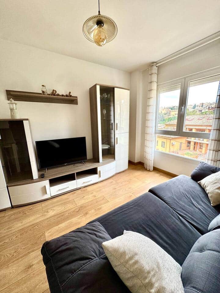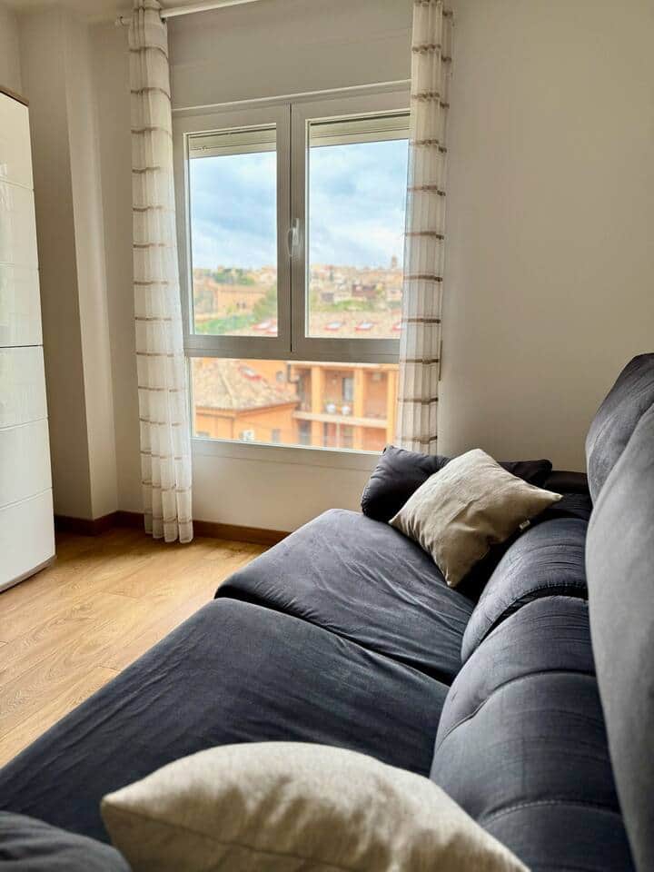 Apartamento para até 6 pessoas. Possui dois quartos, um banheiro completo, sala de estar com sofá-cama e cozinha totalmente equipada. Oferece ar-condicionado, aquecimento, Wi-Fi e estacionamento gratuito no prédio. Localizado em uma área tranquila próxima à Ponte San Martín, com fácil acesso ao centro histórico de Toledo e boas conexões rodoviárias.